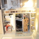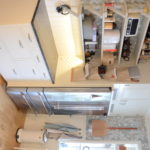 Bänkskivor av svart granit med underlimmad diskho.