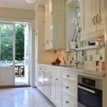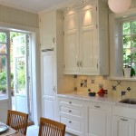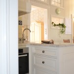 Handmålat i högblank tonad vit får det klassiska köket en modernare framtoning